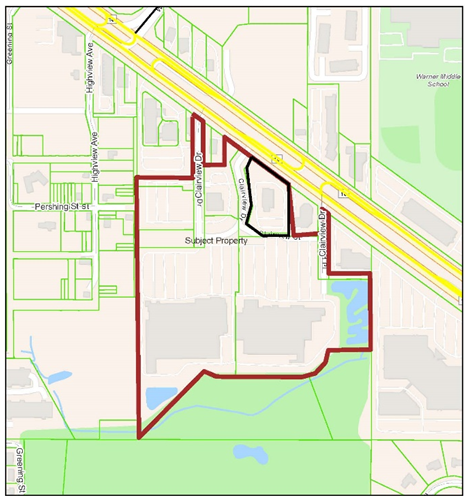 The subject parcel is located at 32555 Northwestern Hwy on the northeast corner of Clairview Drive and Clairview Court, south of Northwestern Highway, and being more particularly described as: Parcel Identification Numbers: 22-23-02-176-065, -066, -067, -068, 22-23-02-177-011, 047, -048, -049, City of Farmington Hills, Oakland County, Michigan. This parcel is one of several that comprises the overall Grand Sakwa-North Orchard Plaza PUD 4, 2000.