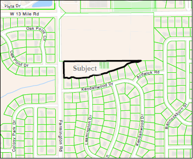 The subject property includes 3.83 acres of land located on the east side of Farmington Road, south of Thirteen Mile Road and being more particularly described as Parcel Identification Number 22-23-10-101-002, City of Farmington Hills, Oakland County, Michigan.