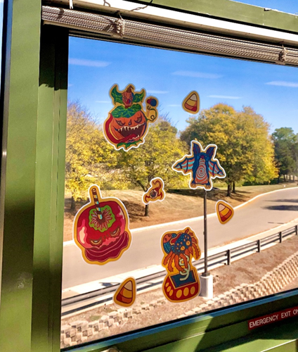Creating your own decorations is another great way to get into the Halloween spirit! Nick D. put his 2D art skills to work by creating his very own set of Halloween window decals.